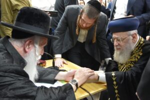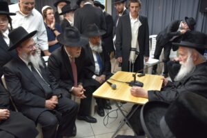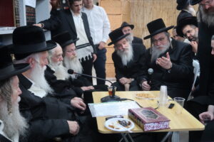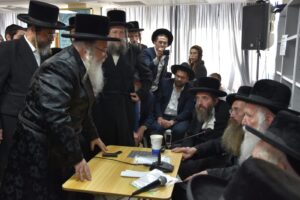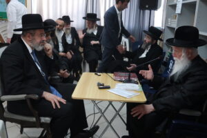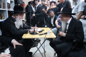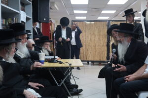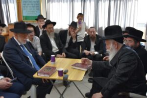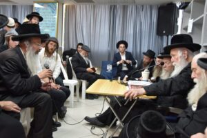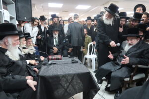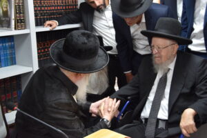 לרגל שמחת החתונה לנכדו עלה האדמו"ר מבאיאן לביקור אצל האדמו"ר מויזניץ במושב אורה להתברך לאחמ"כ נערך לחיים לרגל השמחה, Iצפו בתיעוד: