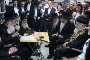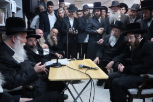 שמחת הברית לנכד האדמו"ר מטאלנא בן לבנו הרב יוחנן טווערסקי ונין האדמו"ר מביאלא פשיסחא אשדוד ונין הרב יחזקאל שלאף אב"ד ביאלווא לונדון, צילום: יהושע פרוכטר I צפו בגלריה: