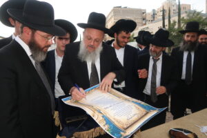 ברוב פאר והדר נערך בירושלים מעמד הכנסת ספר תורה לביהמ"ד באר מים חיים בקרית צאנז לע"נ רבי שמעון וויטמאן זצ"ל בראשות גאב"ד קרית צאנז שליט"א ובהשתתפות בני האדמו"ר מגור צילום:אלחנן קוטלר Iצפו בגלריה: