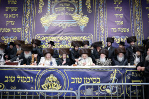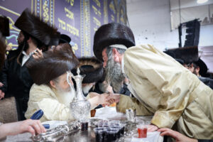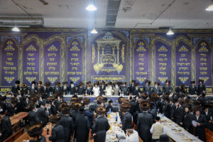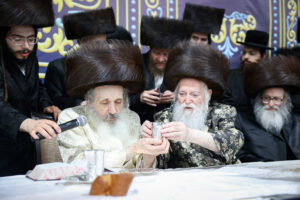 שמחת הברית לנכד האדמו"ר מטאלנא בן לבנו הרב יוחנן טווערסקי ונין האדמו"ר מביאלא פשיסחא אשדוד ונין הרב יחזקאל שלאף אב"ד ביאלווא לונדון, צילום: יהושע פרוכטר I צפו בגלריה: