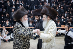 האדמו"ר מבאיאן עלה השבוע למעונו של מרן פוסק הדור הגר"מ שטרנבוך להתברך לרגל שמחת החתונה לנכדו לאחמ"כ נערך לחיים ופצחו בריקוד נלהב צילום:דוד ארזני I צפו בתיעוד: