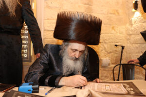 שמחת התורה#מעמד כתיבת אותיות בחצה"ק שומרי אמונים בס"ת שהוכנס בשבת