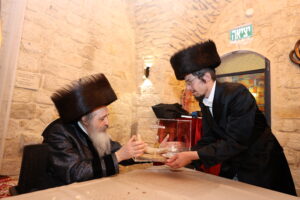 לרגל שמחת החתונה לנכדו עלה האדמו"ר מבאיאן לביקור אצל האדמו"ר מויזניץ במושב אורה להתברך לאחמ"כ נערך לחיים לרגל השמחה, Iצפו בתיעוד: