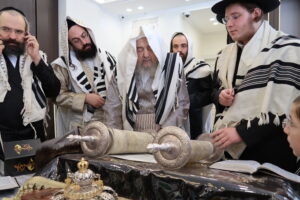 מעמד הכנסת ספר תורה לזכותו של פאר הדור הגרי"מ שכטר שנכנס למעונו בהשתתפות אדמורי"ם ורבנים. סעודת המצווה נחגגה ברוב פאר והדר באולם ויאמר יצחק בירושלים צילום:יהושע פרוכטר- יחיאל רייכמאן Iצפו בגלריה:
