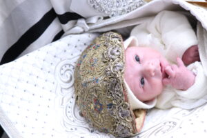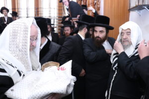 שמחת הברית נערך בביהמ"ד ביאלא בירושלים לנין האדמו"ר מביאלא וקופיטשניץ ונין האדמורי"ם מקוזמיר ולעלוב בי"ש .המוהל היה הגה"צ רבי יעקב מאיר שכטר. התינוק היה חבוש בכיפה של הרה"ק רבי ישראל מרוז'ין זי"ע, צילום:מתיתהו גולדברג -י.פריד Iצפו בגלריה: