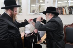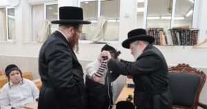 שמחת הברית לנכד האדמו"ר מטאלנא בן לבנו הרב יוחנן טווערסקי ונין האדמו"ר מביאלא פשיסחא אשדוד ונין הרב יחזקאל שלאף אב"ד ביאלווא לונדון, צילום: יהושע פרוכטר I צפו בגלריה: