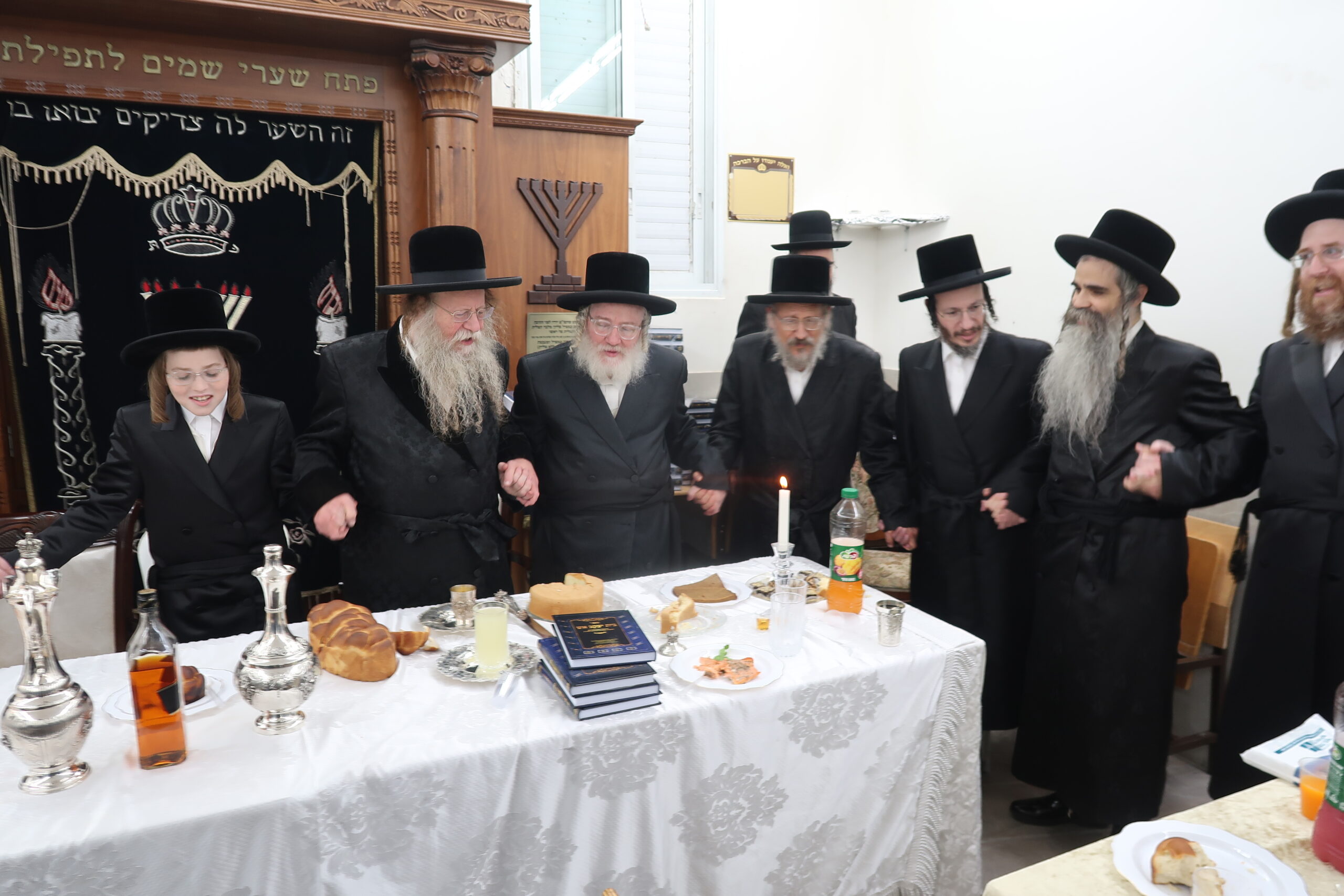 האדמו"ר מבראד הגיע לביקור בזק לרגל שמחת הברית לבן מקורבו הרב נחום יצחק פראנק יו"ר פרנסה שנערך בבית שמש כמו"כ התקיים סעודת ר"ח בקרב בני הקהילה בבית המדרש בראד ברמה ד בי"ש , צילום:שלמה ארנשטיין Iצפו בגלריה: