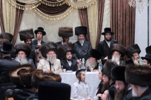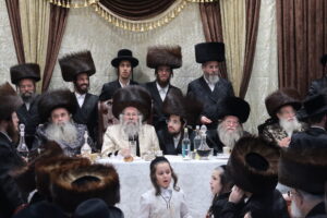 שמחת הברית לנכד האדמו"ר מטאלנא בן לבנו הרב יוחנן טווערסקי ונין האדמו"ר מביאלא פשיסחא אשדוד ונין הרב יחזקאל שלאף אב"ד ביאלווא לונדון, צילום: יהושע פרוכטר I צפו בגלריה: